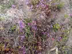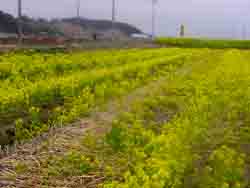 菜の花が咲き乱れ、あぜ道には鮮やかな紫の小さな花が咲いています。都忘れでしょうか??、遠くの海には灯台が見えて、海辺りののどかな風景に、何だか胸一杯きれいな空気がナ゛枯れ手いるようです。 |