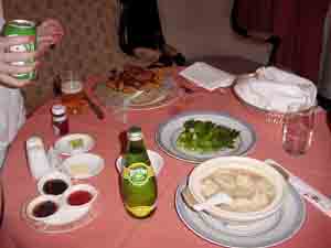 | 香港には深夜12時頃に到着、ホテルのルームサービスはワンタンメンと青菜とあっさりした香港ビール・・・それにのり巻きとお稲荷さんは成田からの持参でした・・ |
