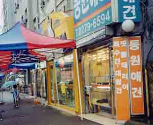 | 韓国のソウルには、秋葉原の電気街のように、同じ業種の店舗が道の両側に軒を連ねています。 南大門の側にペットショップが50店前後が大きな通りの左右に並び、獣医さん、ペットの学校などもあります。 この通りは「忠犬の路」と名づけられて、一般の人や地方のペットショップからの仕入れも多いようです。 | |||