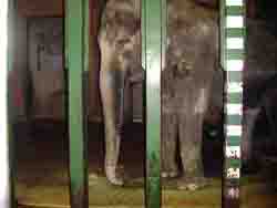 午後3時を過ぎて到着したら、運動場は清掃中で、既にはな子さんはゾウ舎の中でした。
