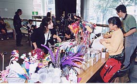 ![]() ショーホールには、いろいろな猫用品や猫グッズの店が並びます。スポンサーのフードメーカーからは、一杯のフード・プレゼントがあります。 |