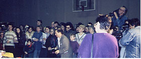 | 1993年のクリスマスはロシア・モスクワのキャットショーで審査しました。この年の5月に政変があってエリツィンが大統領にロシアの国会議事堂に大砲が放たれて、黒くすすけたままで、工事の天幕がかけられていました。 モスクワの町 ![]() 土曜日の朝、窓の外は人が一杯、暖冬のぬかるんだ道を、何だか急ぎ足で歩いています。 クリスマスなのに、ネオンサインを見たのは1つだけ、バスタブの栓が無いので、持っていたゴルフボールを利用、シャンプーは八重子さんが持参していました。 「なぜ、こんな寒い時期にショーをするの?」と聞いたら、「暖かくなったら畑のジャガイモでショーにくる人がいなくなる」・・・納得 ショー会場は満員御礼 ![]() ショー会場は、出陳者と見学者であふれていました。出陳料は約$15、見学は$2、1日の給料は$2とのこと・・・2日間ともテレビカメラが回って、グルーミングの説明をと言われたものの、ボクが日本語で八重子さんが英語にして、こっちに背を向けているクラブ代表のオルガさんかがロシア語にします。 ても、この企画は10分でボツになりました。 陽気なデービット ![]() ショーマネージャーのデービットはニューヨーク育ちのアメリカ人、オルガに惚れてロシアに来たんだって・・・サイベリアンのブリーダーです。 ロシアでNo.1のサイベリアン ![]() がっしりした胴体と頑丈なアゴが印象に残る。 モスクワではメスは$100、オスは$50で「なぜ?」に 「メスは子猫を生むから・・」長毛は2倍です。 サイベリアンは$200??? ファイナルは大拍手!! ![]() 八重子さんとボクのベスト・キャットはスモークのペルシャでした。素晴らしい猫だと、カタログを見るとアメリカ産・・・どこの国も同じです。 ボクの秘蔵の写真 ![]() 陶磁器のような真っ白な肌をした、ボインボインの美人がボクのクラーク。 また、モスクワに行かなくちゃ・・・ あんまりくっつくな・・・。 ![]() ショーが終わって、帰国前のショッピング、その頃の報道と違ってマーケットには食料が山積み・・・。キャビア(最高級で$8)とスモークサラミを一杯買ってきました。 |