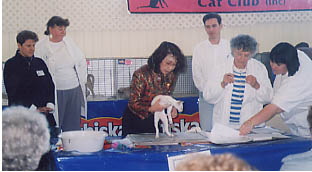 | 1997年7月 アデレート・ビッグショーの翌週、飛行機で北へ3時間の素朴な港町・パースで審査をしました。エントリーは250頭、2日間の審査ですから余裕です。宿泊はショーセクレタリーの両親の家、パースの町が見渡せる小高い山の中腹にあるイギリスタイプの家です。 食事がおいしかった。イングランド風の朝食、パイや肉料理、土曜日の夕方は暖炉に火を入れて、ドライマーティニーと静かな音楽で、いろいろなお話をします。お土産は原住民の楽器・ディジャリドウですが、未だにスースー音が漏れるだけです。 審査の方法は実習すみですが??? ![]() 審査台の上に厚く敷いてある新聞紙???分かると、なるほど・・・猫が変わると新聞紙を丸めて捨てるのですよ。手は横の消毒液入り洗面器で洗うの白毛の猫なんかは困りそうだけど・・・。 この地区では、シャム、オリエンタル、そしてブリティッシュショートヘヘアーが素晴らしかった。 メガネをは外している老婦人がオーストラリアでは数少ないオールブリード審査員・・・ボスです。 猫の出し入れは助手任せ、審査員の見習です。 ![]() 優秀なラグドールが出ていました。 助手の1人が血だらけになったのには ビックリしましたが、そうすれば審査員は、怪我することもありませんね。でも、男子の助手の手は傷だらけで、ただただ感謝あるのみ。 アーア、審査員への道は厳しいものです。 ベンガルを初めて審査しました。 ![]() 八重子さんが最優秀猫に選んだベンガルです。 くすんだようなこげ茶に見えますが、油を塗ったような輝きがあり、被毛を掻き分けると、燃えるように赤い色、アビ、オシー、アメショーのブラウンなどに理想とされる毛色だと思いました。 体重は7kg程度でズシリとしています。性格は甘ったれ・・・こんなベンガルなら飼ってみたい。 表彰式は別の部屋 ![]() 審査助手の愛猫がベスト・シャム 左奥の男性が旦那さんで その手が傷だらけ・・・・ 出陳された猫は、何かの賞を 貰えますが、商品は実用品・・ 次々に賞が発表されて 歓声と拍手に包まれます。 やっぱり、パフォーマンスも大切・・・ ![]() ボクの最優秀猫はバイカラー・ペルシャ 重たいこと、重たいこと、骨がガッシリ・・ ペルシャの美しさの原点にあるような 素晴らしい猫に出会えて・・・感激・・・ オーストラリアでも有名な猫だそうです。 頑丈な骨格のペルシャを繁殖したい人は アメリカばかり見ないほうが良いかも・・・ コアラを10分以上も抱っこして・・・大満足。コアラならパースが一番。 ![]() アデレートの動物園でもコアラと 記念撮影しましたが、横の止まり木の コアラに並んでパチリで・・はい、次の方。 でも、パースのナショナルパークでは、開門時間に行って、まっしぐらにコアラの小屋に行きました。 係りの人とコアラだけ。すぐに抱っこさせてくれましたが まだ、記念撮影の仕度ができていません。 八重子さんは、コアラの子守り役になって、ずーと抱っこできて、大満足・・・ ボクはカメラマンで・・・コアラを抱っこできませんでした。でも、八重子さんうれしければ亭主も満足! |