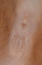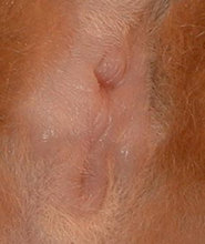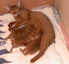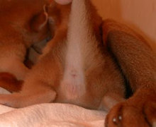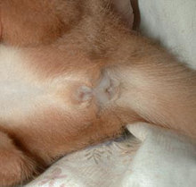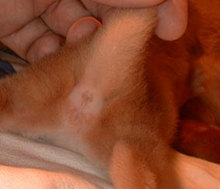 | オスかな?メスかな? 2000年7月5日 アビの赤ちゃんが誕生したCさんから、オス・メス判定の写真が届きました。生後8日目、レッドのアビシニアンです。このHPを訪れる皆様にも判定をしていただければ・・・どうぞ判定とコメントを「猫ヒゲ掲示板」に答えの発表は7月17日まで延期します。(なお、正解者への賞品提供は・・・交渉中です・・大きな期待はしないでね) |